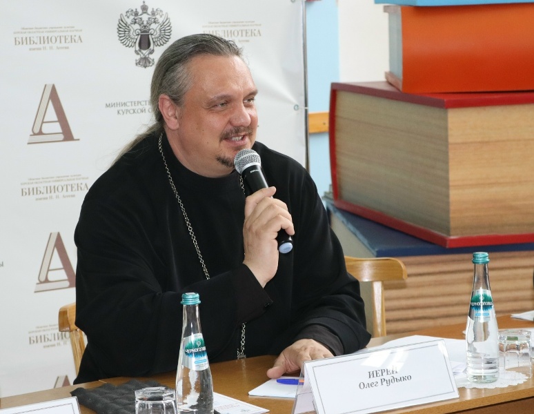 Открыл заседание иерей Олег Рудыко, руководитель отдела по культуре Курской епархии, клирик Покровского храма г. Курска.